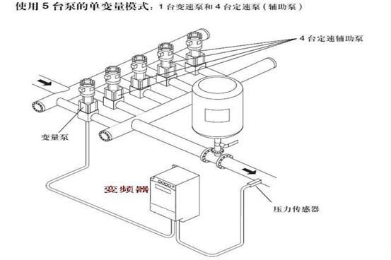 (5)泵組及線(xiàn)路保護檢測報警,信號顯示等將管網(wǎng)的實(shí)際壓力經(jīng)反饋后與給定壓力進(jìn)行比較,當管網(wǎng)壓力不足時(shí),變頻器增大輸出頻率,水泵轉速加快,供水量增加,迫使管網(wǎng)壓力上升。反之水泵轉速減慢,供水量減小,管網(wǎng)壓力下降,保持恒壓供水。